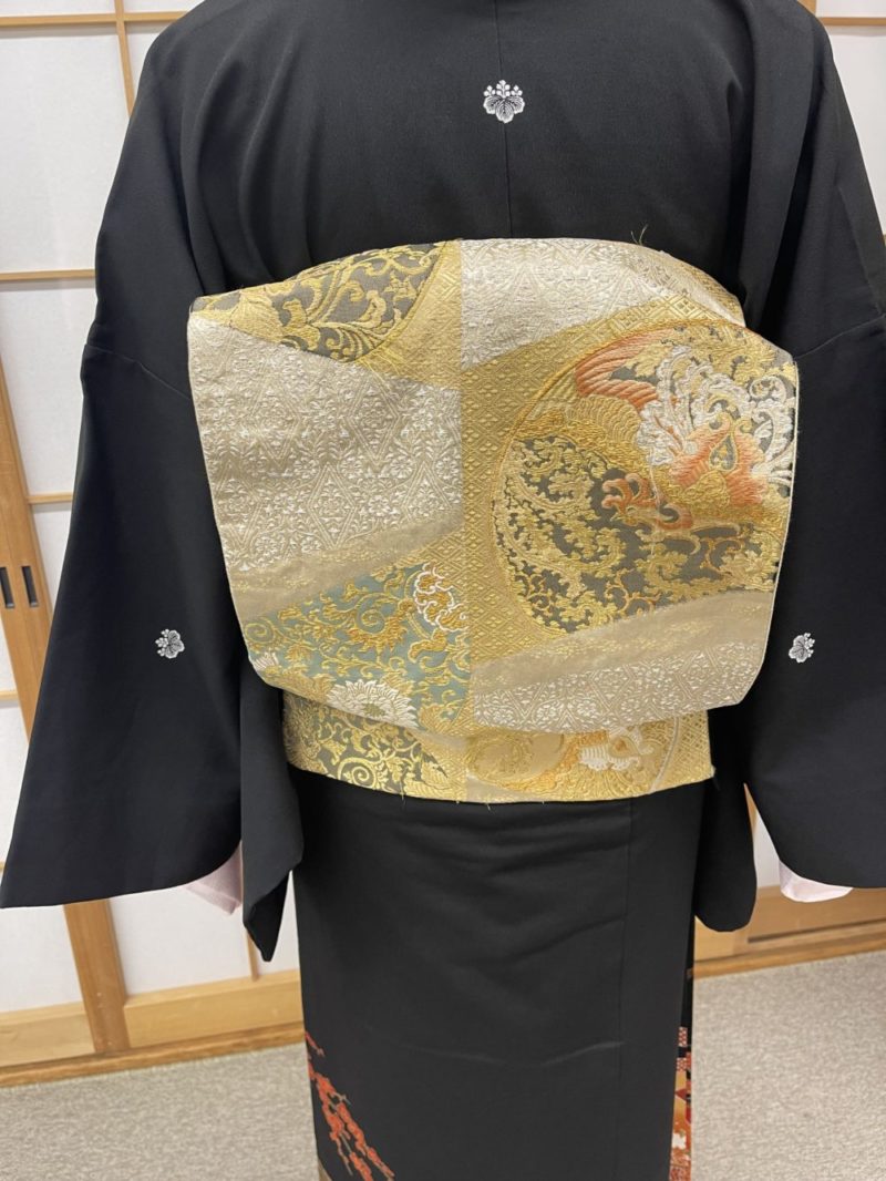 紋の位置も気をつけて着付ます。